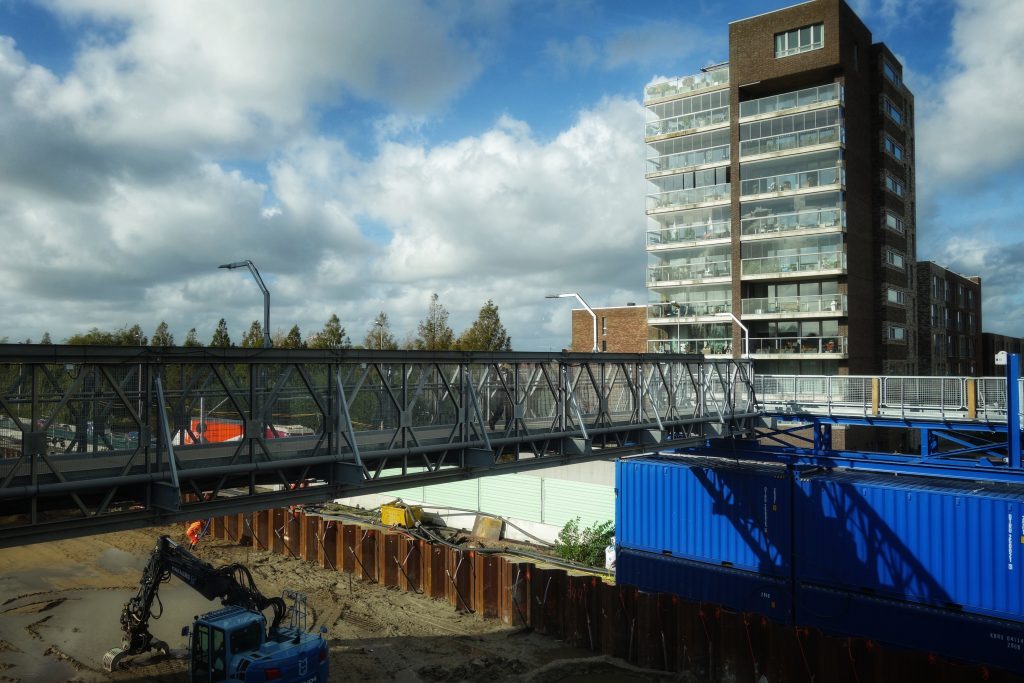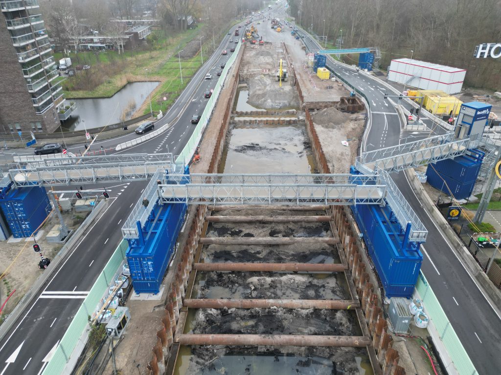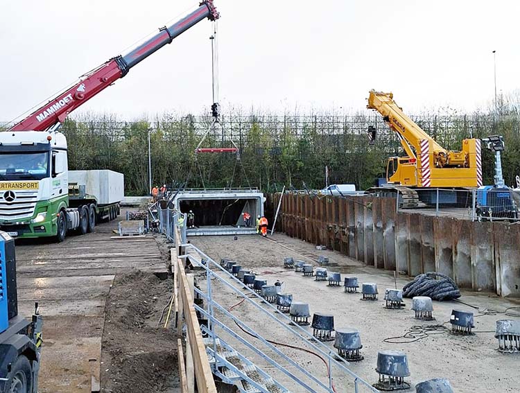 De tunnelelementen worden geplaatst.