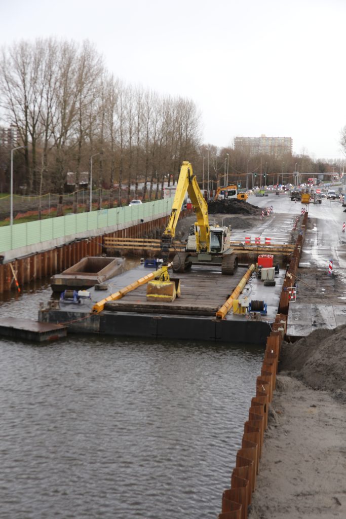 Werkzaamheden aan kruispunt Noorder IJ-Zeedijk en Sluispolderweg zijn in volle gang.