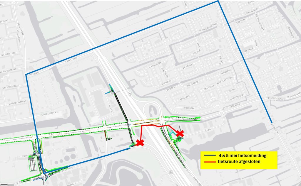 Fietsroute Oostzanerdijk / Verlengde Stellingweg / Skoon tijdelijk afgesloten