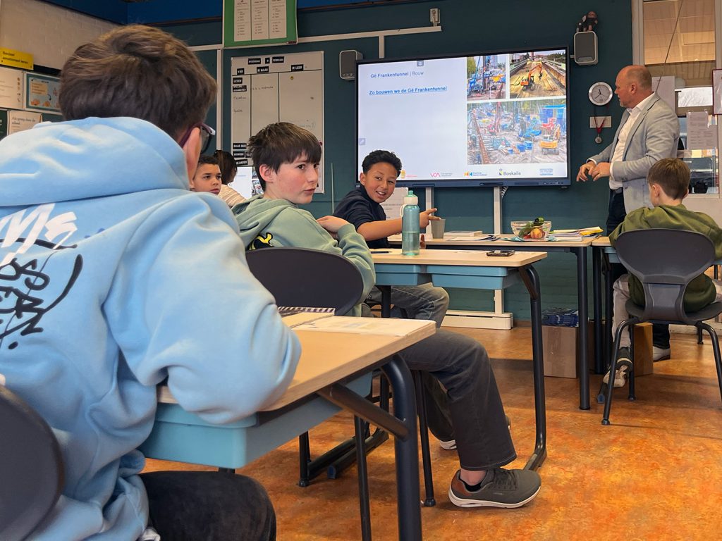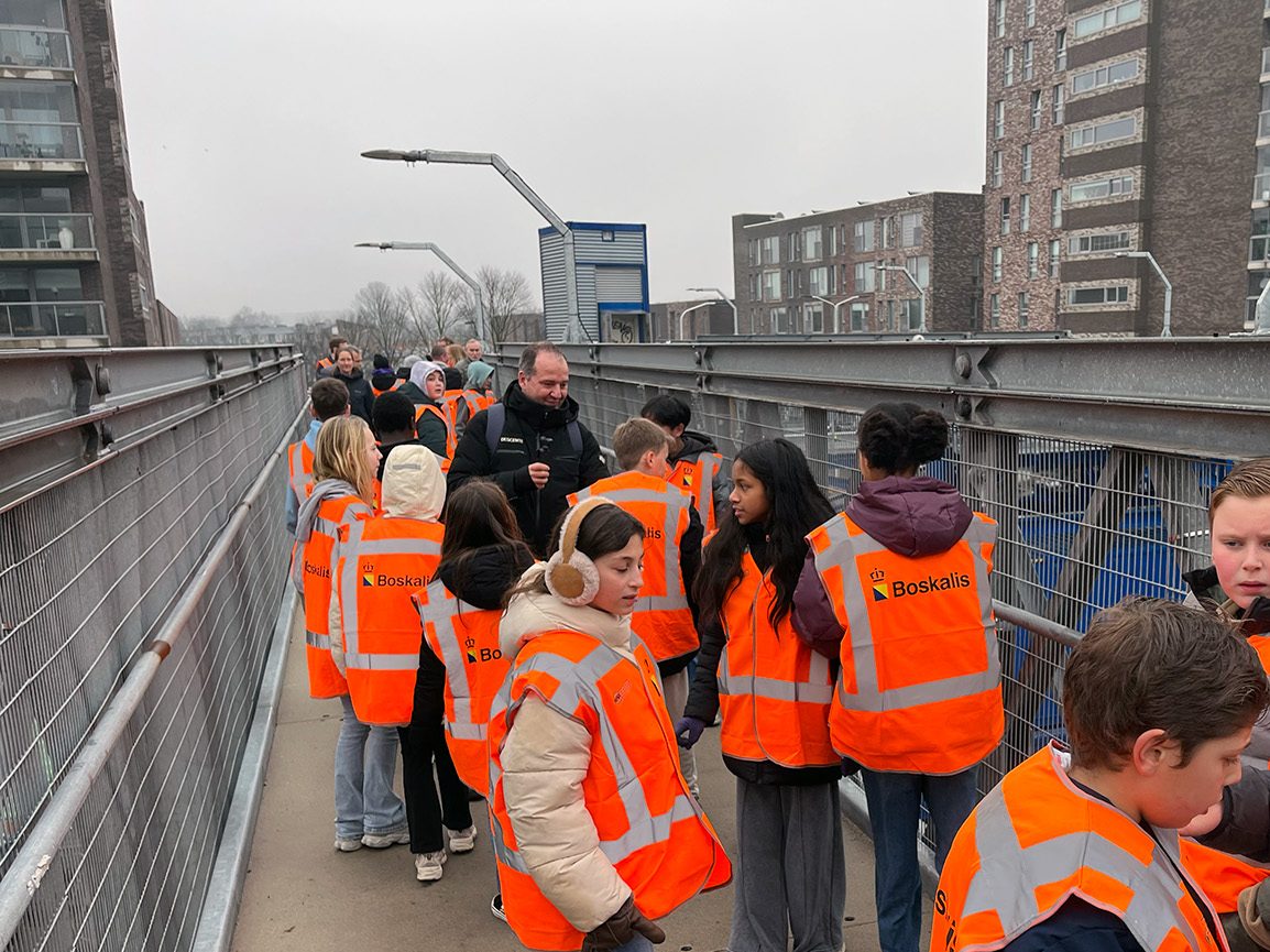 Na de les gingen de kinderen op de fiets naar de voetgangersbrug bij de bouw van de Gé Frankentunnel. Ze leerden dat Gé Franken een oud-burgemeester van Zaanstad was. De tunnel is naar hem vernoemd. Vanaf de brug konden ze zien hoe de tunnel wordt gebouwd.