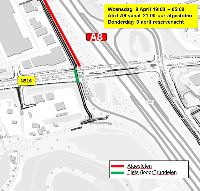 - Deze stops duren ongeveer 15 minuten.De afrit van de A8 is in deze nacht afgesloten.